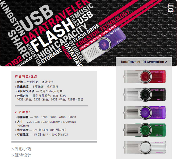 独具特色的Co-Logo服务 DataTraveler 101 G2 系列闪存盘还支持金士顿独具特色的Co-Logo服务,您可以将公司的的标志或其他图像印制在闪存盘上,还可以在闪存盘内部预存您指定的内容,使闪存盘成为企业的专属产品。 |