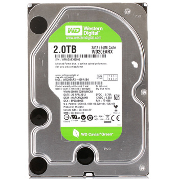 西部数据 绿盘 2TB SATA6Gb/s 64M 台式机硬盘(WD20EARX)