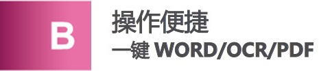 只需轻轻一按,就可以把扫描文档转化为WORD/PDF等您需要的格式。应用更趋多元化,进一步提升了工作效率。配有多个智能快捷按键,方便您的操作。