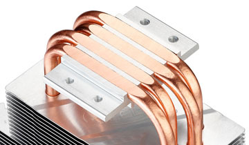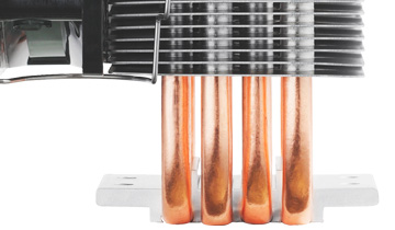 4根纯铜高效热管,科学的热管弯曲角度设计,平衡热管与鳍片性能最优点,保证玄冰400超强散热效能,为玩家带来极速散热体验。