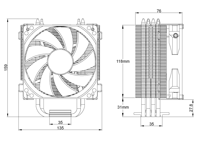 | 散热器尺寸 | 135X76X159mm |