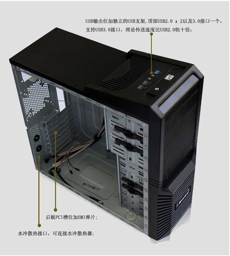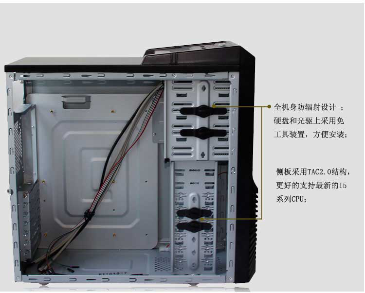 航嘉御辐王机箱采用优质导电金属材质,做工优秀的EMI弹片保证金属板材之间形成良好的接触,从而保证机箱内的EMI辐射不会从机箱侧盖溢出。此乃御辐王五星防辐射之一。
