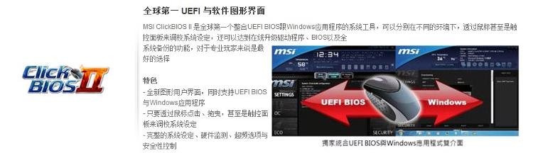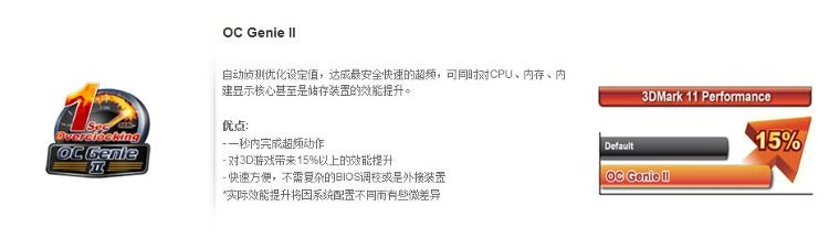 | 独家特色 | OC Genie II,UEFI 与软件图形界面,M-Flash,Winki 3,USB 安全卫士,Super Charger,Live Update 5 |