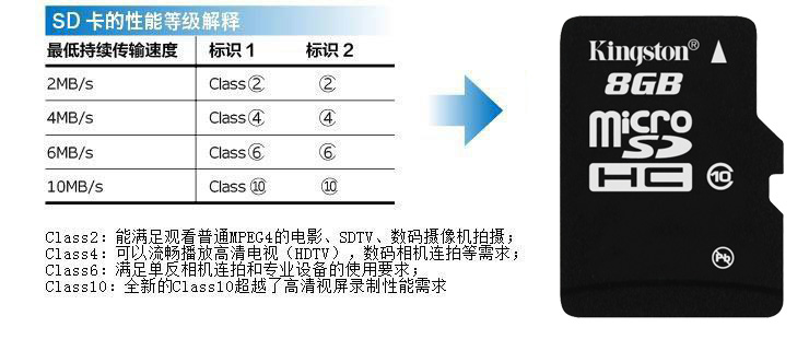 金士顿 8G Class10-30MB/S TF(Micro SD)存储卡