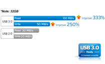 USB 3.0 接口在市场上已越来越普及,S102 Pro 采用最新的 USB 3.0 传输接口,读取速度最高可达每秒 100 MB、写入速度最高可达每秒 50 MB。比起S102 ,S102 Pro效能最高提升50%,减少大量影音和文件档案传送之等候时间,是一款高效能并物超所值之随身碟代表作。
