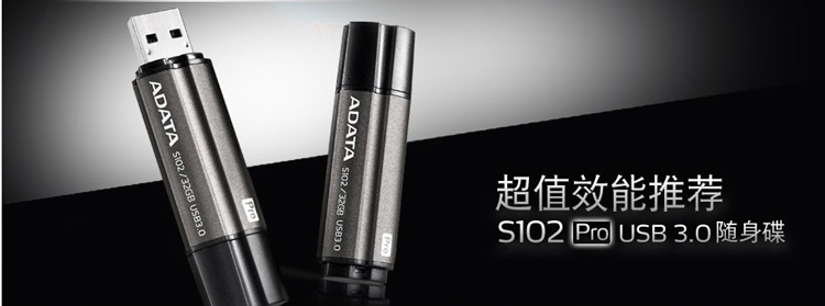 威刚科技S102 USB 3.0 系列闪存盘再进化,震撼推出S102 Pro,延续以往高质感的铝制合金外壳,S102 Pro效能提升至最高每秒读取100MB,让您享受传输快感,在价格上威刚科技更是保持高贵不贵的奢华,完美提供您对高C/P值的最佳选择。