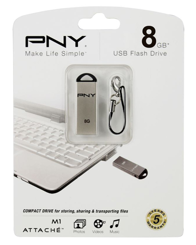 其他方面M1 Attaché有多种容量选择,最高可达32GB。内部采用A+级优质存储芯片读写速度优异,完全兼容常见的windows 7,Mac OS︰10.3等操作系统,五年质保期秉承了PNY系列随身碟的一贯优良作风,充分满足使用者的存储需求