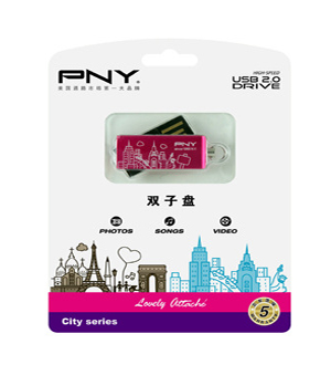 纽约/巴黎双子盘在普通U盘的基础上主要提供四大特色:一为360度旋转式设计,用户任意旋转均可使其USB接口外露;二是采用了COB的芯片封装方式,可以同时防水、防尘和抗压;三是采用无盖一体式设计,用户不需担心丢盖的可能。四是采用激光镭雕技术印刷,永不褪色。