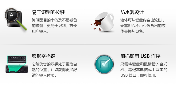 | 其他特性 | 线缆长度:鼠标1.8米,键盘1.5米 |
