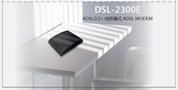 | 特性 | DSL-2300E 是一款ADSL2/2+ 纯桥模式 ADSL MODEM |