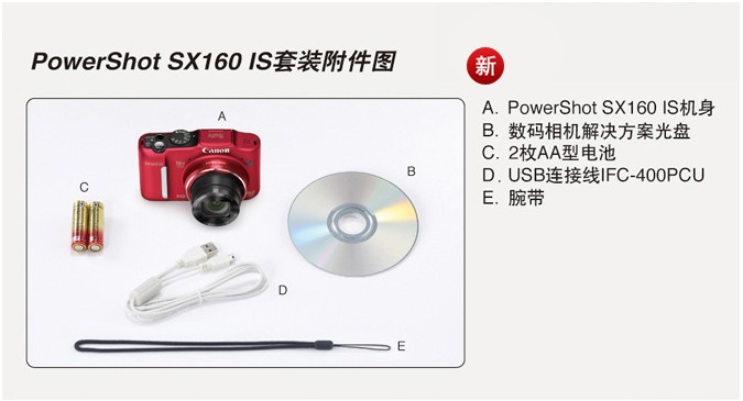 佳能 PowerShot SX160 IS 数码相机 红色(1600万像素 3.0英寸液晶屏 16倍光学变焦 28mm广角)