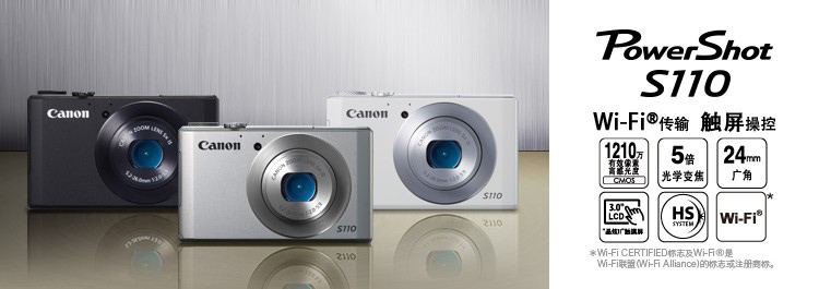 PowerShot S110率先在S系列内置了Wi-Fi功能,可将精彩的照片或短片传输至支持Wi-Fi?的相机、智能手机/平板电脑、计算机以及打印机上。