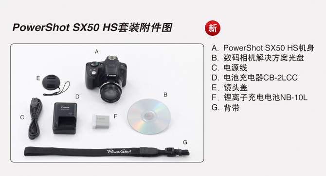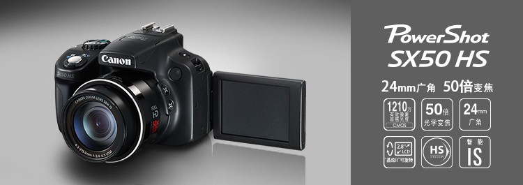 佳能 PowerShot SX50 HS 数码相机(1210万像素 2.8"可旋转液晶屏 50倍光变 24mm广角)