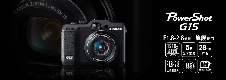 佳能 PowerShot G15 数码相机(1210万像素 1.8超大光圈 5倍光变 28mm广角)