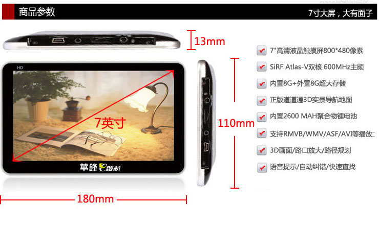 随机配件:车充/USB数据线/说明书/保修卡/E宝宝服务卡/触摸笔/背夹/支架(请注意:如有遗漏,请联系华锋e路航在线客服补发,配件清单会根据实际情况稍有不同!)