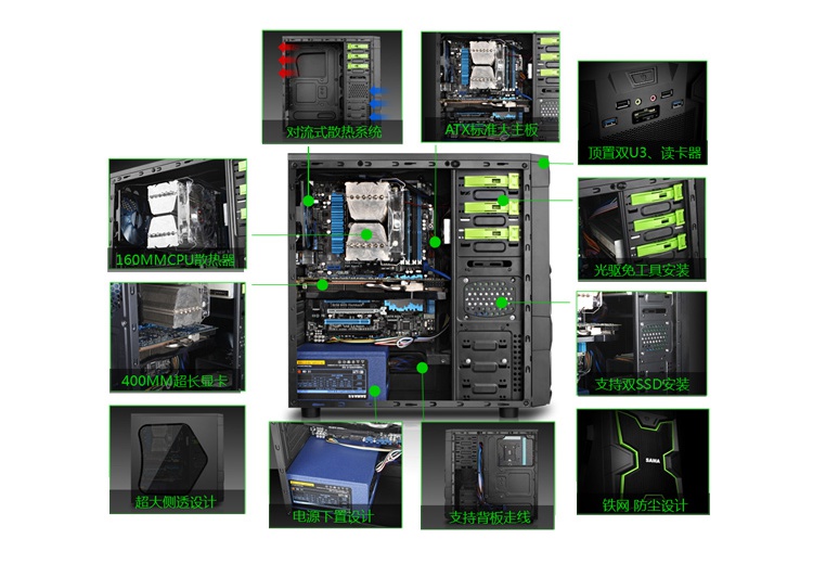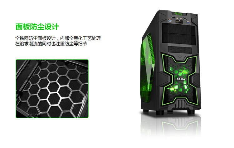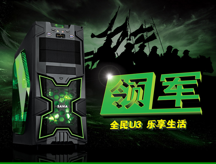 先马 领军 大侧透游戏机箱(双U3/读卡器/前板绿灯风扇/支持双SSD)