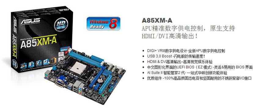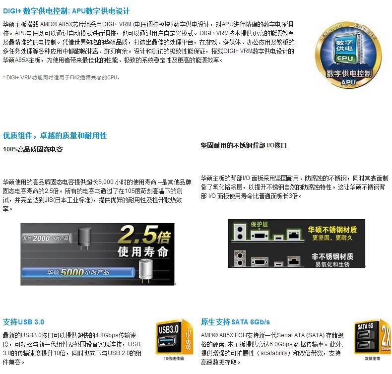 华硕 A85XM-A主板 (AMD A85X /Socket FM2 )