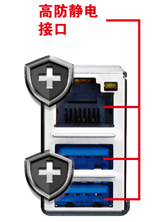 高防静电功能的USB接口和网络接口 技嘉Intel® 8系列主板全面提升主板的防护能力,为容易受到静电侵袭的USB接口和网络接口,提供先进的高防静电(ESD)的USB接口和网络接口设计。每个网络接口和USB接口都设计有专用的防静电芯片,保护你的电脑远离静电的袭扰。 |