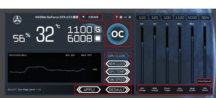 作为全基因品牌,影驰独家研发的显卡辅助软件,New Magic Panel(魔盘)也得到更新,全面支持GTX 650黑将。