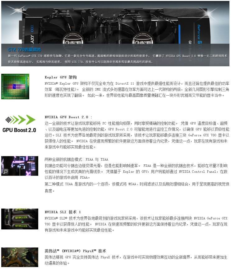 影驰 GTX770四星黑将 显卡 GDDR5(/2048MB/256bit/1110/1163MHz/7010MHz)