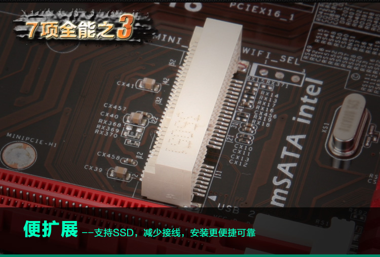 | 特性 | 板载mSATA SSD扩展插槽,智能主板3.0 |