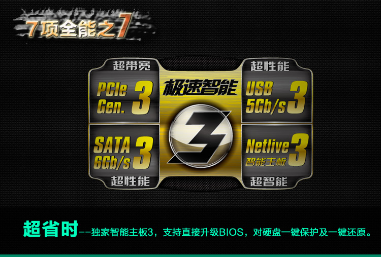 | 独家特色 | 智能主板3,中文BIOS支持 |