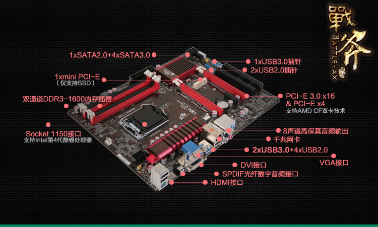 | 兼容系列 | 支持intel LGA1150 Haswell处理器(3+3相供电,支持TDP95W处理器,建议使用功耗少于或者等于95W的处理器) |