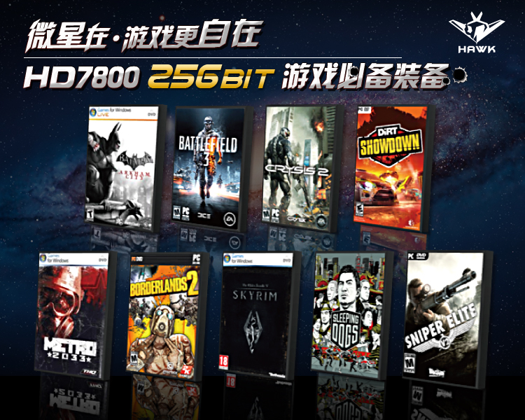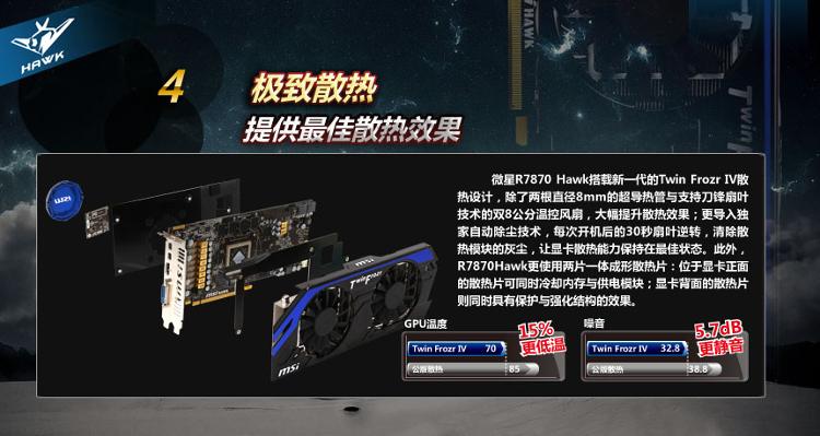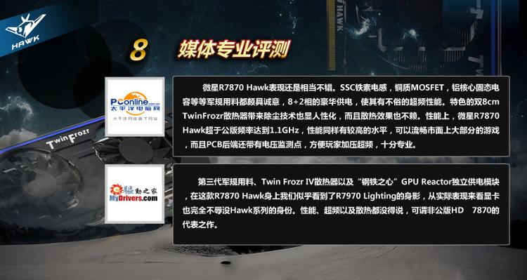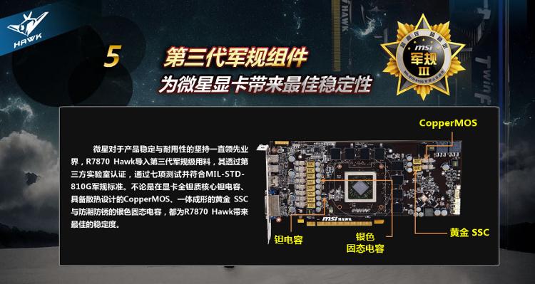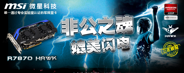 微星 R7870 Hawk 2G 1100/4800 MHz 2G/256bits GDDR5 PCI-E显卡