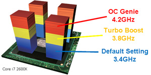 OC Genie II 只要按下 OC Genie 按钮就能在 BIOS 选单中启动 OC Genie II 功能,CPU 效能 (P67 系列) 或 iGPU (H67/H61 系列)的 3D 效能将会大幅提升。特色- 独家 OC Genie 侦测硬件配置- 智能型自动设定 CPU 与内存或 iGPU 频率/电压- 一秒提升整体系统效能 |
