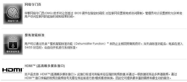 | 独家特色 | 华擎 A-Tuning 华擎 Instant Flash 华擎 APP Charger 华擎 X 极速 USB 华擎 X 极速网络 华擎 X 极速内存 华擎 Crashless BIOS 华擎网络守门员 (OMG) 华擎云升级 华擎 System Browser 华擎云医院 华擎整机智能除湿 华擎简易阵列 华擎云驱动 华擎绚动 UEFI 华擎闪速启动 华擎重启至 UEFI 华擎全时播放技术 华擎 U 密 华擎变频风扇 安心超频技术 (Hybrid Booster): 华擎通用 CPU 过热保护技术 B.F.G., 启动失败恢复技术 晚安指示灯 |
