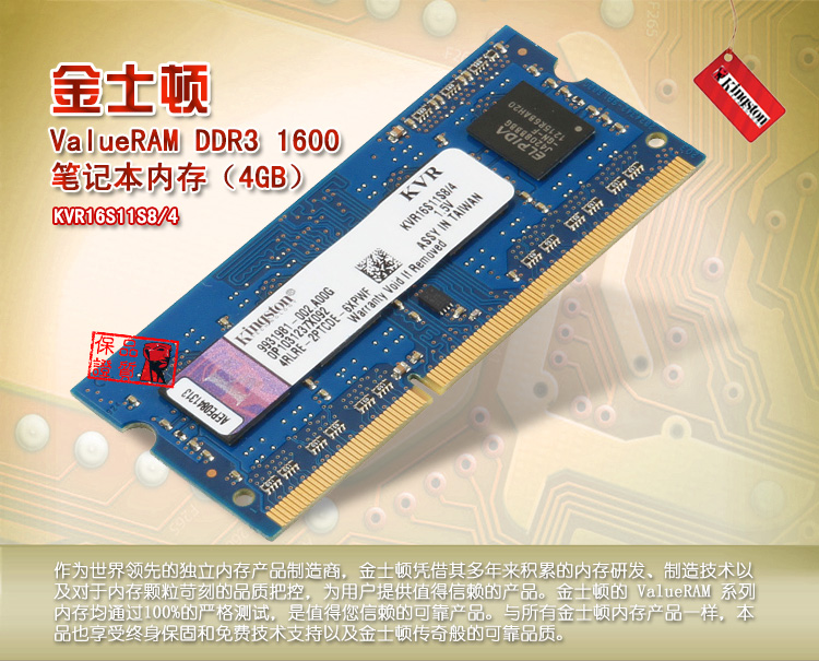 精心打造的高稳定性 金士顿 KVR 内存产品皆使用原厂颗粒,通过严格的测试和筛选试验。针对市场主流系统平台做长时间的连续烧机测试及高低温度耐受度测试,100%多级测试使其具有优秀的高稳定性和高效能,让您以更节省的预算享受到安心的质量,满足高标准需求。 |