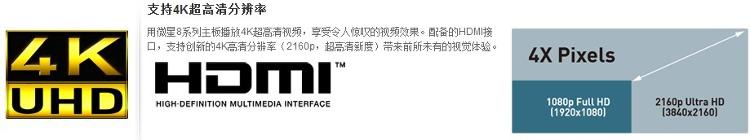 | HDMI接口 | 1 x HDMI 连结头,最高分辨率达 4096x2160 @24Hz, 24bpp/ 2560x1600 @60Hz, 24bpp/ 1920x1080 @60Hz, 36bpp |