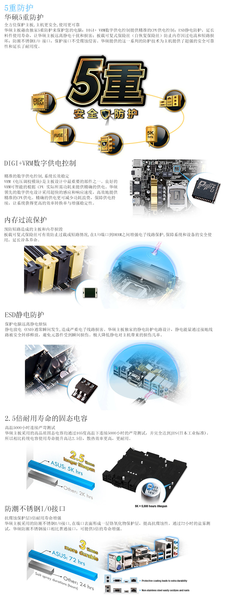 | 独家特色 | 华硕5重防护 华硕EPU智能节能处理器 华硕独家功能 - 集显提速 - Ai Charger - AI Suite 3 - UEFI中文图形化BIOS - USB 3.0 加速 - 网络智能管理中心 |