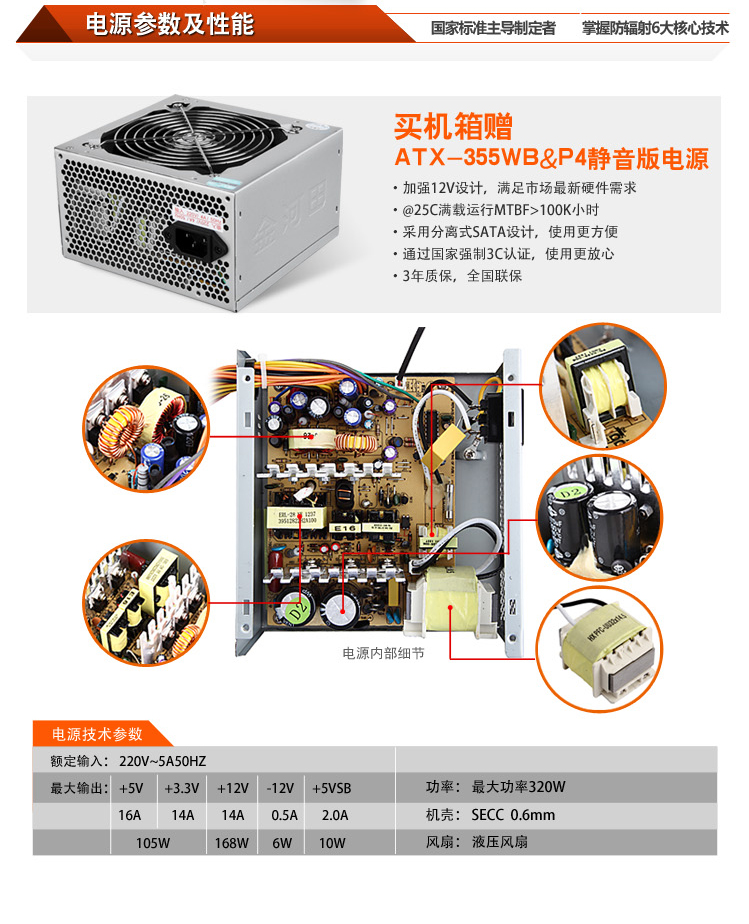 | 标配电源 | 金河田ATX-355WB&P4静音版 |