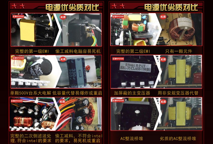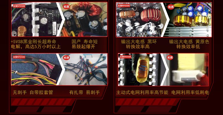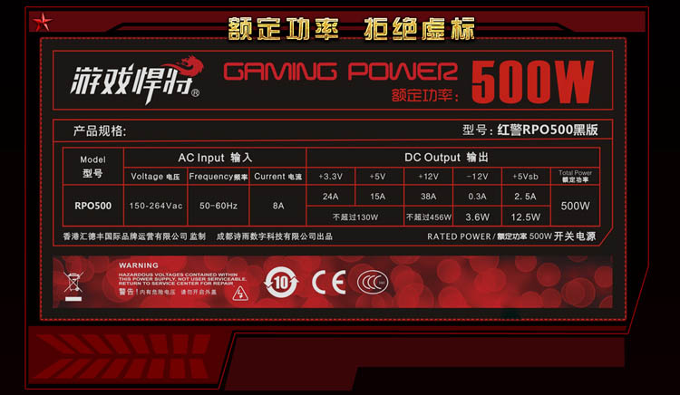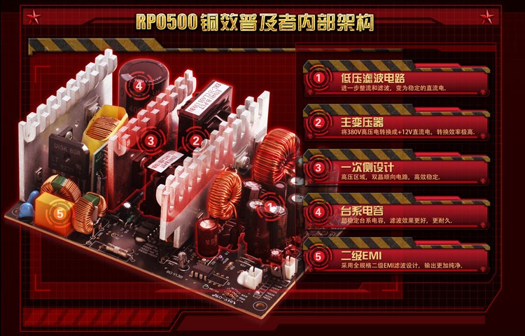 游戏悍将 额定500W 红警RPO500 电源 (主动式/额定500W宽幅/智能温控)