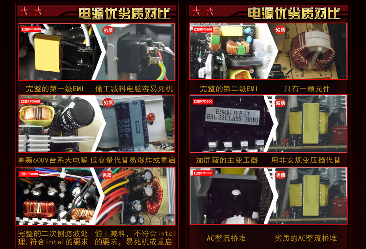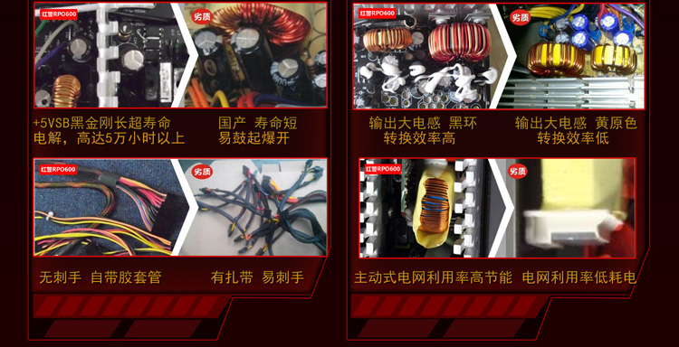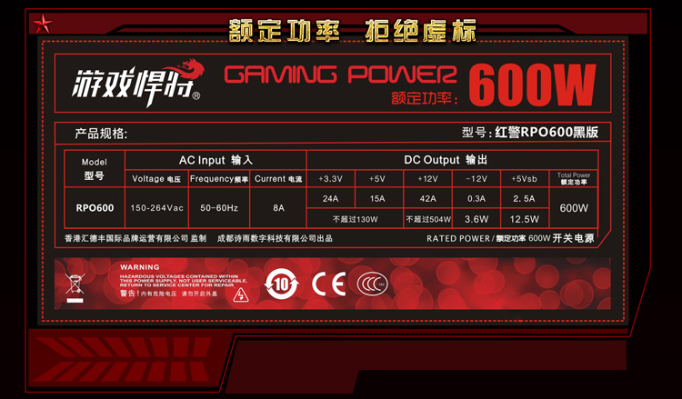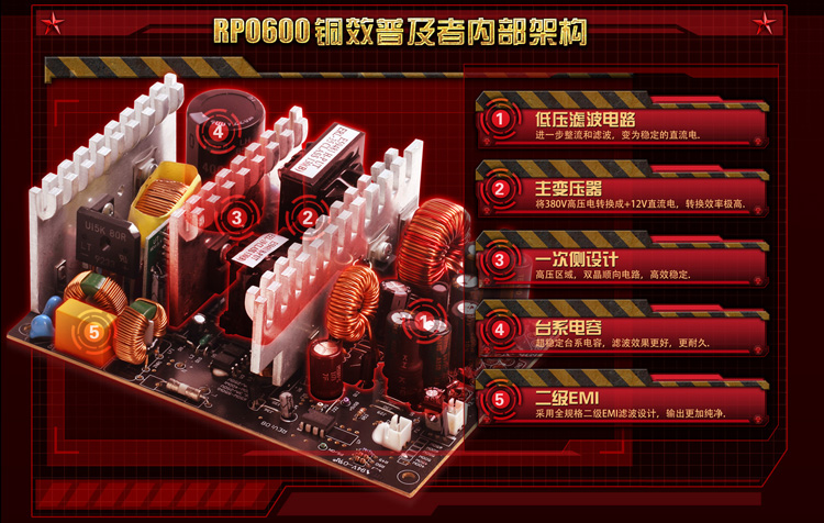 游戏悍将 额定600W 红警RPO600 电源(主动式/额定600W宽幅/智能温控)