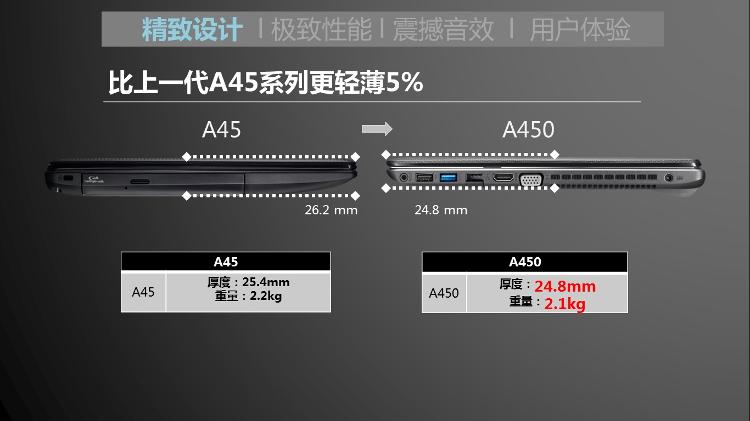 外观尺寸 约34.8 x 24.1 x 2.48 ~3.17 cm (WxDxH)笔记本重量 2.3Kg