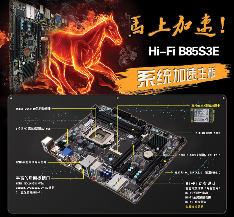 映泰 Hi-Fi B85S3E 主板(Intel B85/ LGA 1150)