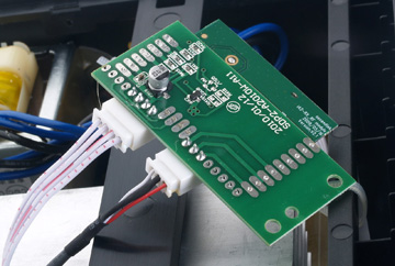 麦博梵高FC361W和FC361(10)在电声结构设计上是一致的,但由于增添了2.4G无线以及一些其它功能,其在电路上有个别调整。而在上图中,位于右侧绿色电路板,就是承载2.4G无线部分的。