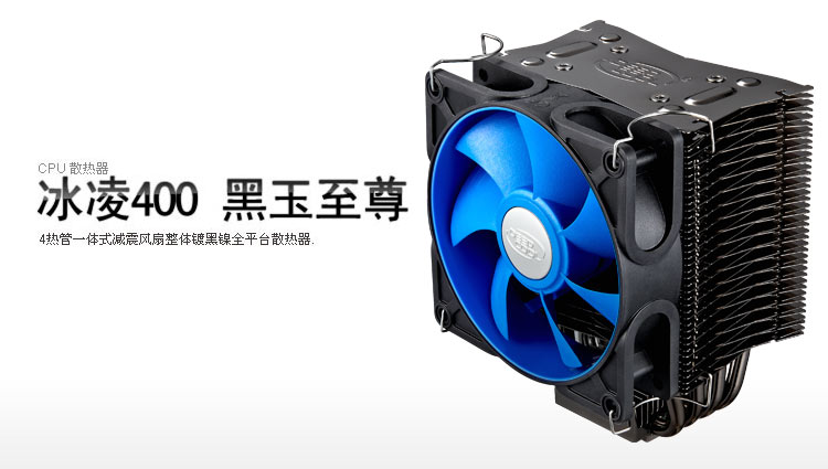 九州风神冰凌400 黑玉至尊 DEEPCOOL 版 全平台 4热管cpu散热器