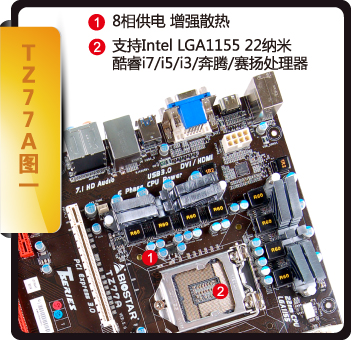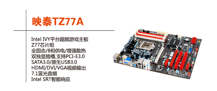 映泰 TZ77A (Intel Z77/LGA 1155)主板 全固态,全接口,独特固态硬盘智能响应功能,大板更稳定~
