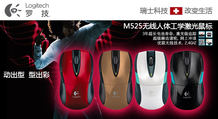 基于罗技独特的追踪技术,M525具备更准确的追踪,更广泛的鼠标移动平面覆盖,更长的电池寿命。