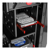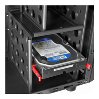 手拿硬盘,硬盘接口向内,这样有利于走背线,美观,同时也不至于硬盘接口顶住侧板使得侧板无法安装