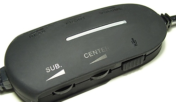 E-95耳机是一款USB接口的5.1声道耳机,因此设计有装有5.1音效芯片的线控器。主音量调节采用了触点式开关,这样能够有效防止长时间使用带来的机械磨损。其他音量调节采用了传统的旋转式电位器。