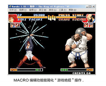 游戏人物:八神庵 MACRO 编辑必杀技:<禁干贰百拾壹式 八稚女> ↓↘→↘↓↙←+轻拳或重拳 具体应用方法: 先在游戏(模拟器)中设置好手柄的按键; 第一步:按下手柄的MACRO键; 第二步:按下“按键5”(设置“按键5”为“设定键”) 第三步:依次按下手柄方向键↓↘→↘↓↙←重拳; 第四步:再次按下手柄MACRO键,输入完成。 |