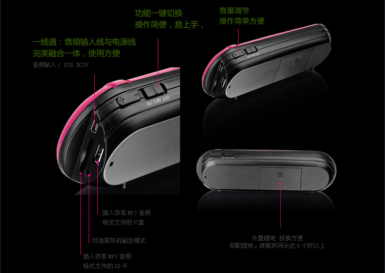 | 电源 | DV5V的USB供电;外置锂电供电 |