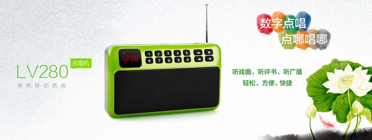 首创数字点唱功能:LV280内置了优质数字解码方案,结合数字按键区域设置,具有完美的数字按钮的识别功能。用户仅需按对应数字,即可获取相应位置的曲目。同时,在收音方面,可以主动收录收音频道,按对应数字即可直接跳到相应位置的电台频道,此外还可支持直接按频道的频率,即可跳到对应的频道; |
